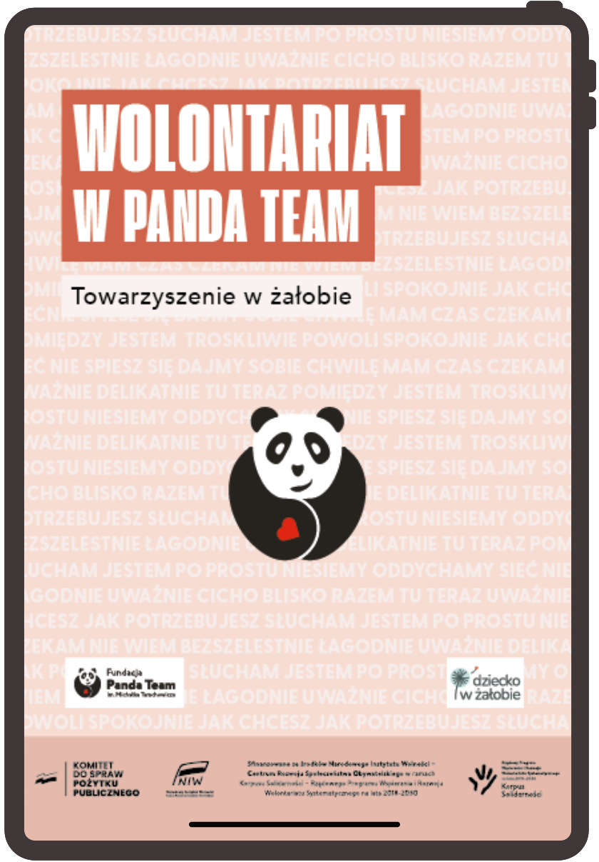 Pobierz broszurę „Wolontariat w Panda Team. Towarzyszenie w żałobie” i dowiedz się więcej o wolontariacie w naszej fundacji.